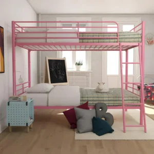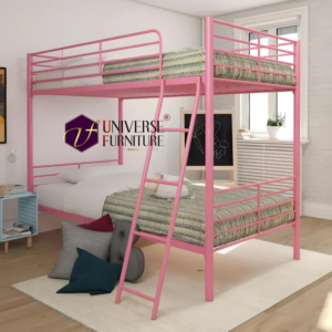 Eiro Twin Metal Bunk Cot Bed Single (Bottom) + Single (Top) – Frame (Pink, Matte) (Powder Coated)
