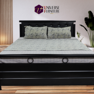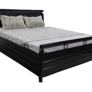Siaz Metal Box Storage Bed In Black Powder Coating Finish, Black Headrest (Top Patra Sheet)