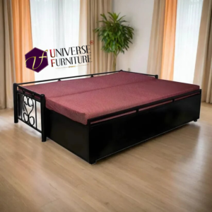Relax Metal Divan Sofa Cum Bed for Home | With Storage | Living Room | Brown Fabric Color