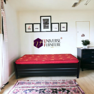 Universe Furniture Ease Metal Full Cushion Sofa Cum Bed with Hydraulic Storage – 3 Seater, Metal Frame | Red & Printed