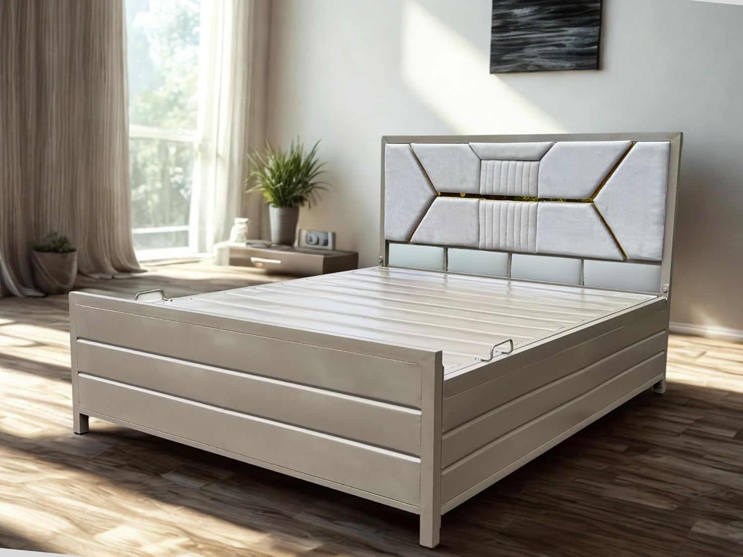 Lekin Metal Box Storage Bed In Powder Coating Ivory Finish New Addition