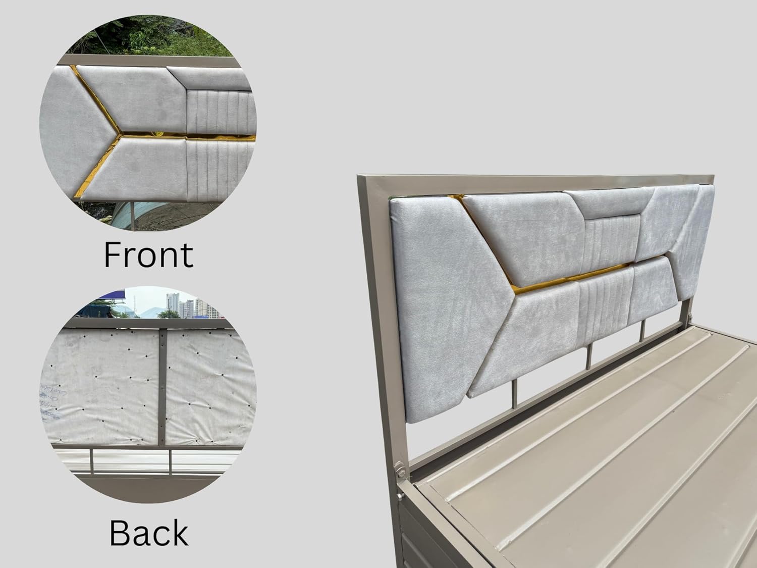 - Material : Metal | Finish : Matte | Style : Contemporary | Bed Size : King/Queen/Single | Room Type : Bedroom | Color : Ivory Matte Finish | Head Rest : Grey Head Rest
