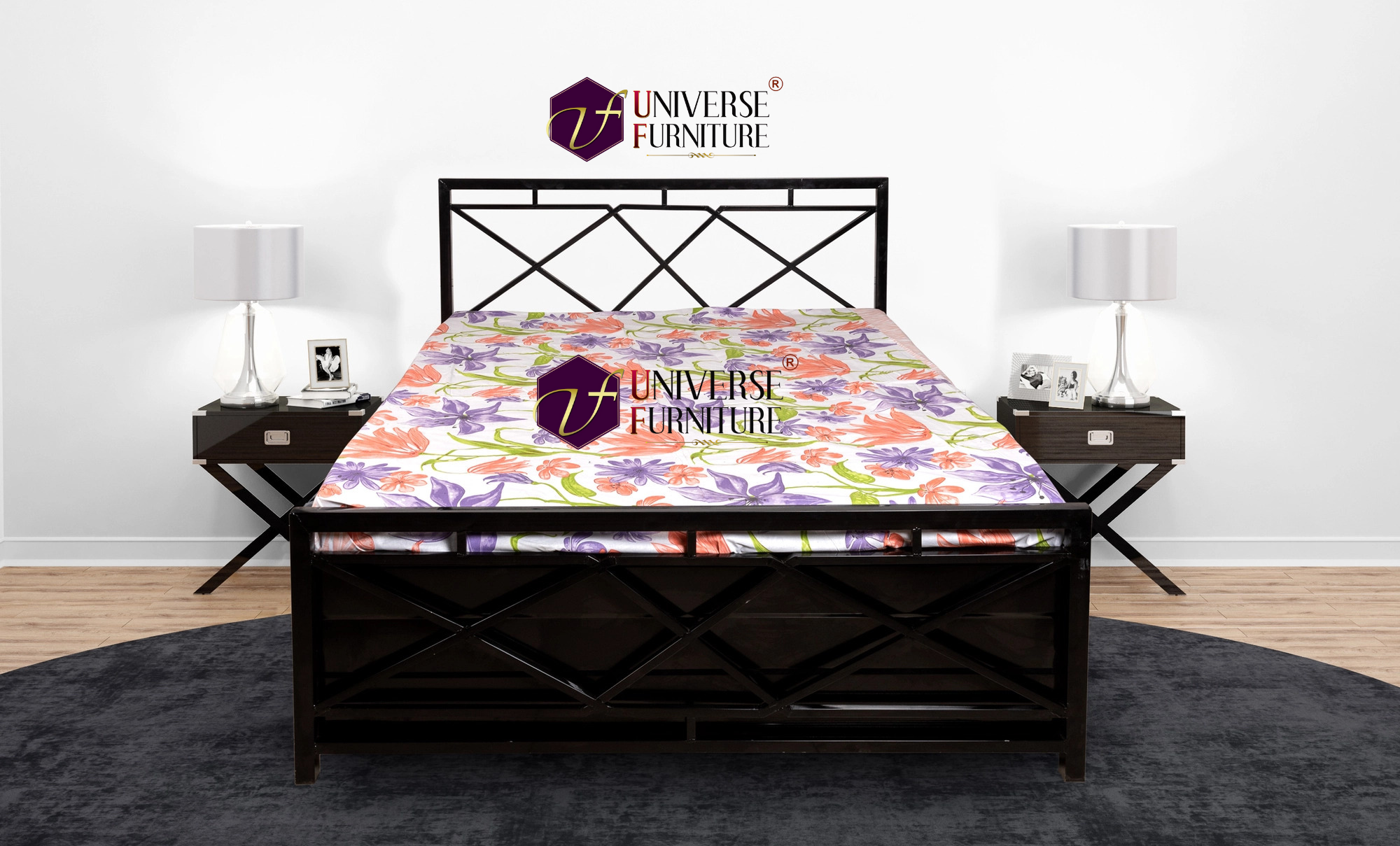 - We are supplying metal bed is for medium to large bedrooms. It crafted from high-quality metal. A wide headboard, design with clean elegant lines add a distinctive appeal while securing your pillows in place. Clean lines along the frames accentuate an elegant look that will complement your home décor. The slats have good weight adaptation to offer the right amount of support. The slatted base also allows air to pass freely beneath your bed, keeping your mattress fresher longer. Providing stability to your mattress. With modern concise look it can fit perfectly into your home. It will be the ideal for your bedroom. Space-Saving design. The bedframe is made up of metal structures to ensure high integrity of structures and robust quality. It can free your hands and brain by eliminating complicated assembly process comparing with other bed frames.